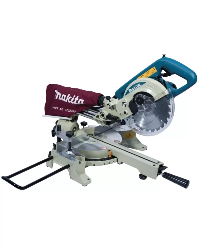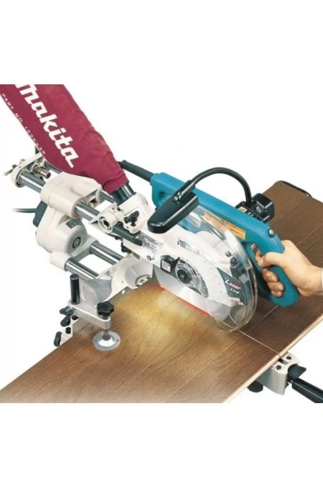 Lehká a kompaktní pokosová pila s dvojitým vysouvacím mechanismem.