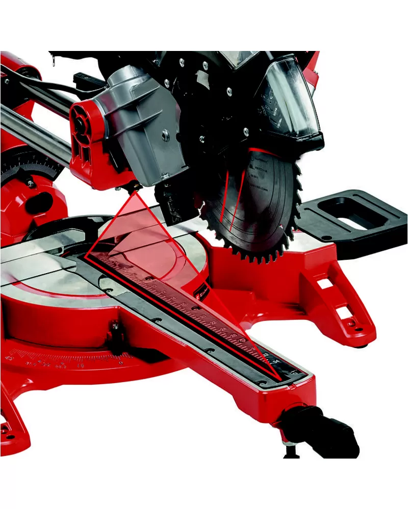 • Integrovaný laser napájaný zo siete označuje líniu rezu