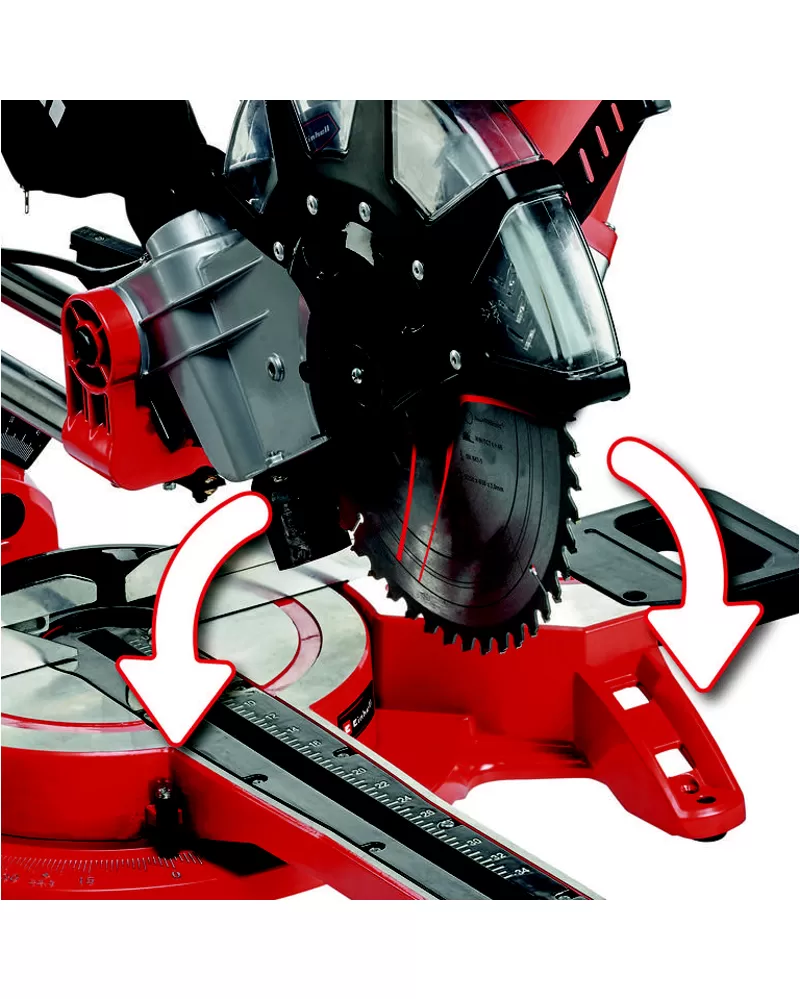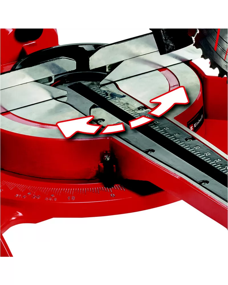 • Kvalitný otočný tanier je dodávaný s možnosťou presného nastavenia uhla pre šikmé rezy, ktorý je možné ručne individuálne uzamknúť v rôznych polohách