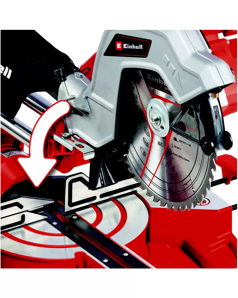• Vysoce kvalitní, robustní pilový kotouč z tvrdokovu poskytuje dokonalé řezy a lze jej snadno vyměnit pomocí aretace vřetena