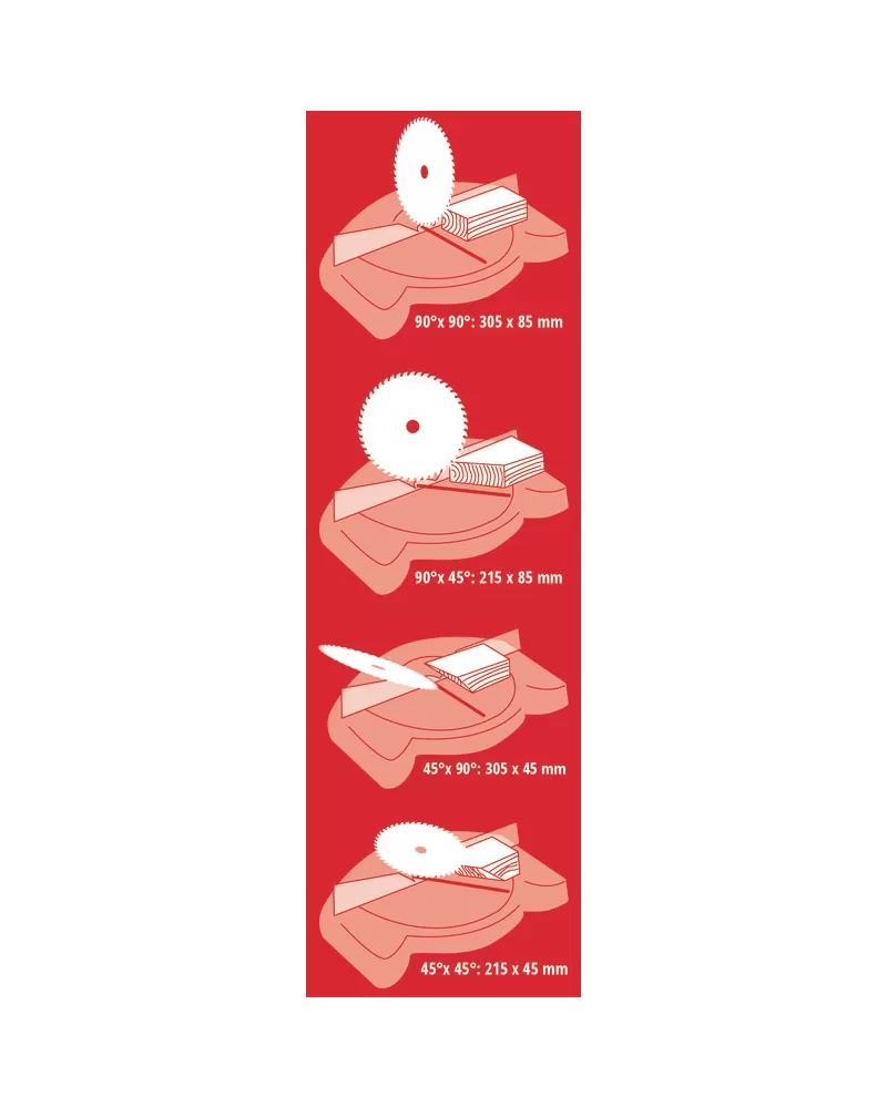 • Šířka záběru je až 305 milimetrů s nastavením 90 ° a až 215 milimetrů s úhlem 45 °