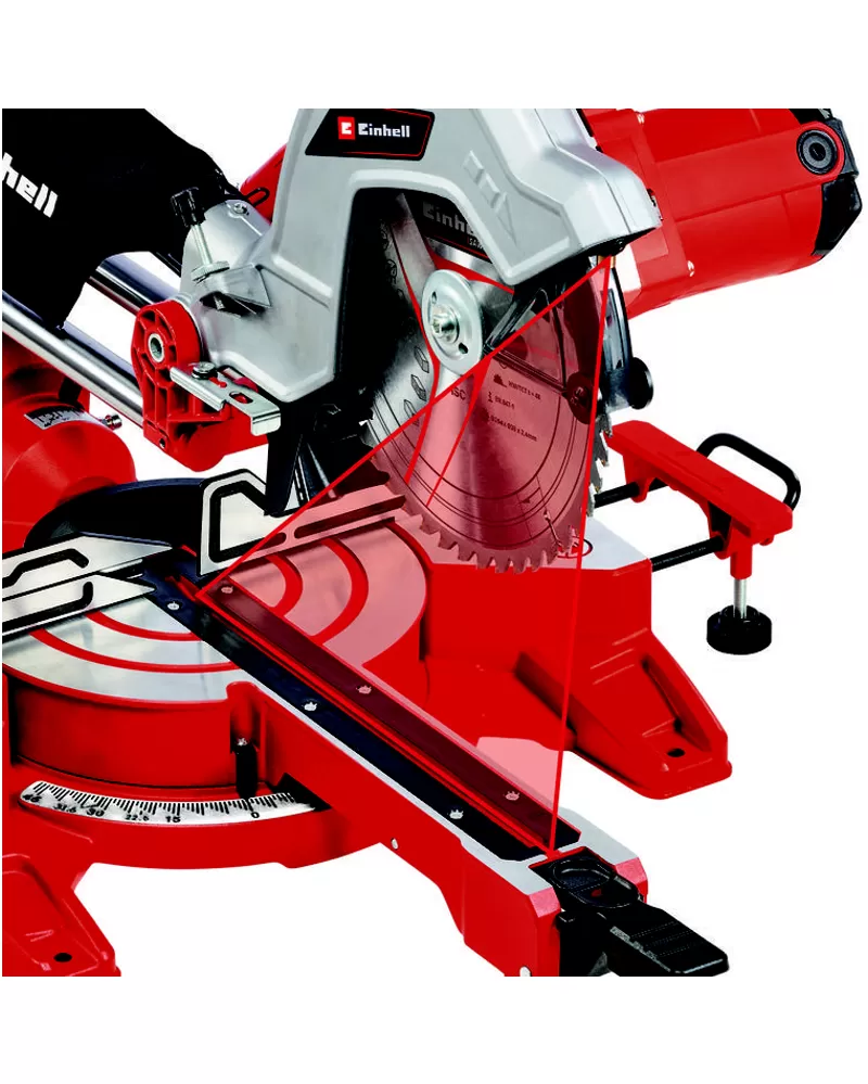 • S výkonem 1 900 W má pilový kotouč (vnější 254 x vnitřní průměr 30) dostatek síly k proříznutí materiálu, na kterém pracujete