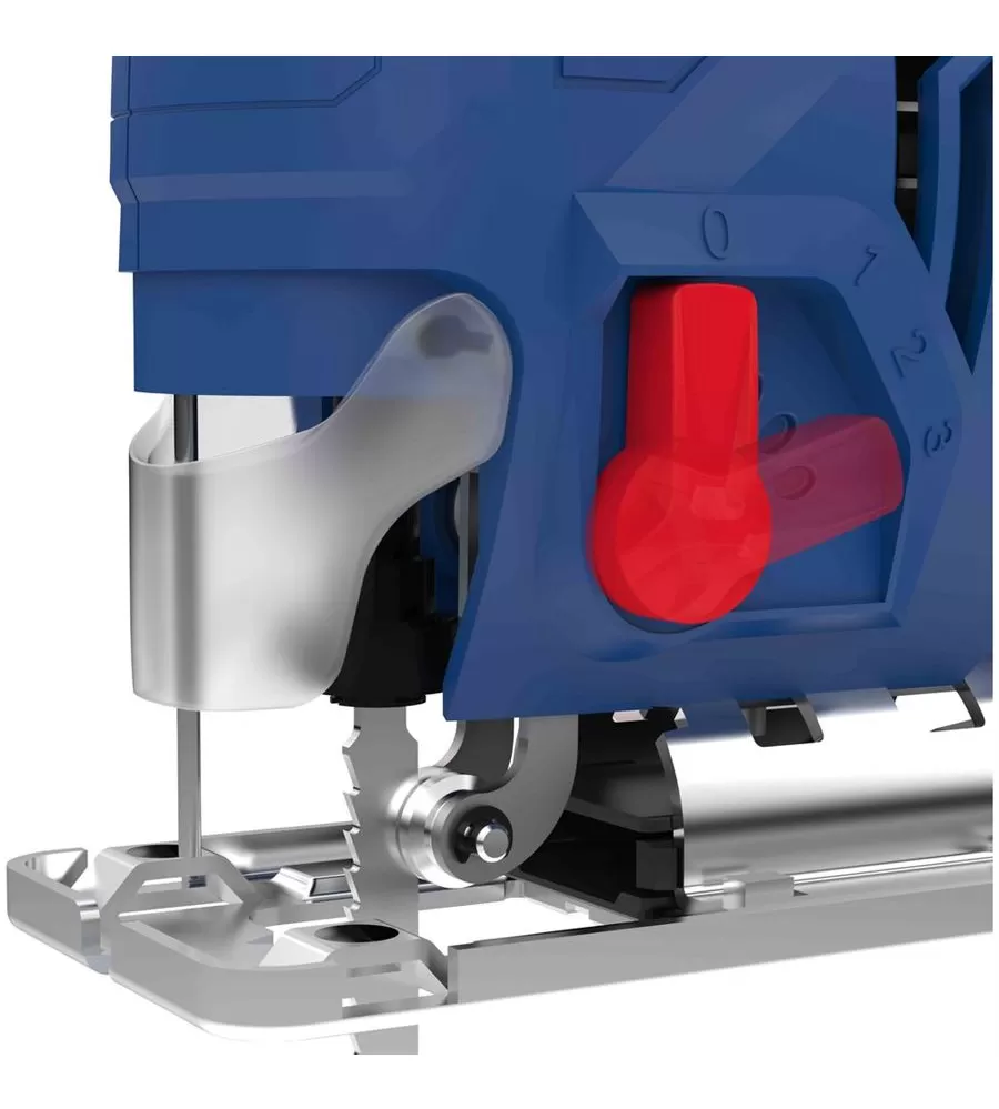 Přímočará pila s plynulou regulací otáček, se systémem rychlé výměny pilového listu bez použití nářadí.