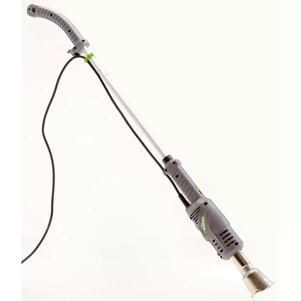 Žárový hubič plevele Verdemax 2793 slouží k rychlé ekologické likvidaci plevele pomocí horkého vzduchu o teplotě 600 stupňů. Používá se na hubení plevele nebo mechů především na zámkových dlažbách, chodnících, terasách, zídkách nebo cestách a to bez použití chemie. Součástí balení jsou zploštělý a speciální kónický pochromovaný nástavec. Výkon můžete nastavit ve dvou stupních pomocí přepínače na rukojeti. Hubič se dá také alternativně použít pro roztopení dřevěného uhlí v zahradním grilu, na odstranění starých nátěrů, rozmrazování. Přípojný elektrický kabel 1,8 m.