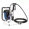 • Umožňuje veľmi rýchlo a efektívne striekať vnútorné steny, stropy, záhradné ploty, prístrešky, steny atď. Stroj má vlastnú saciu hadicu, takže farbu môžete nasávať z vedra alebo priamo z nádoby, v ktorej ste ju kúpili.