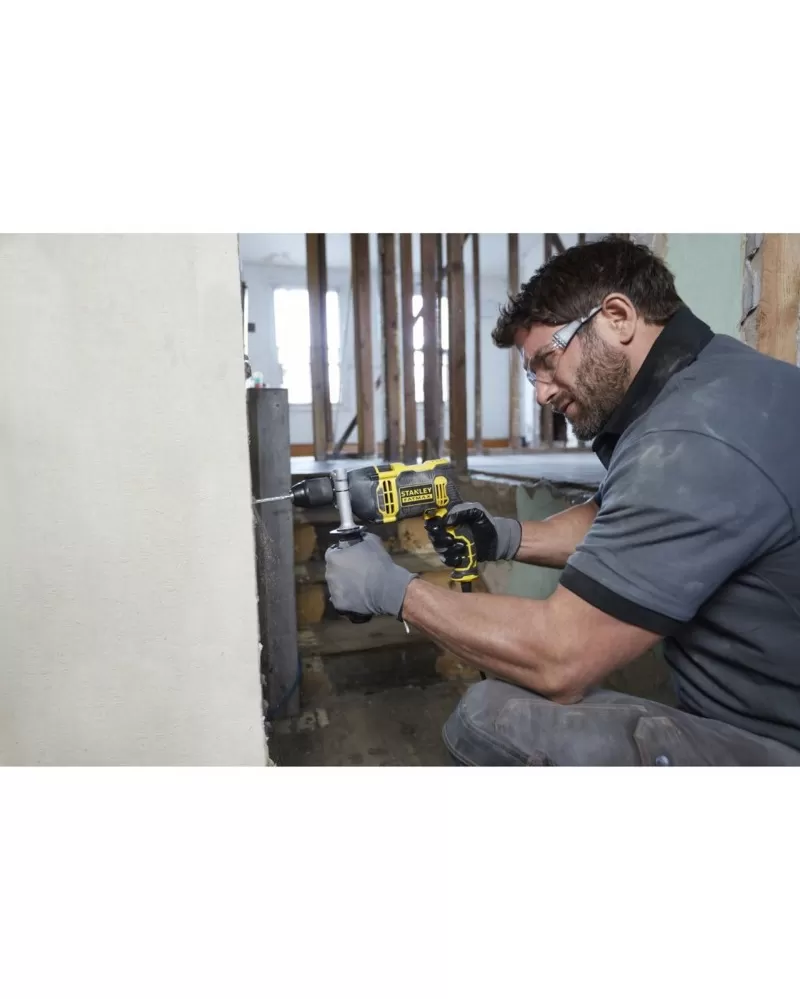 Dvourychlostní příklepová vrtačka Stanley FatMax FMEH850 s výkonným příklepovým mechanismem a odolným dvouobjímkovým sklíčidlem.