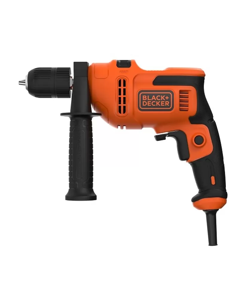 Příklepová vrtačka 500W Black&Decker BEH200 s možností vrtání do dřeva, zdiva i oceli, která najde uplatnění doma i v dílně.