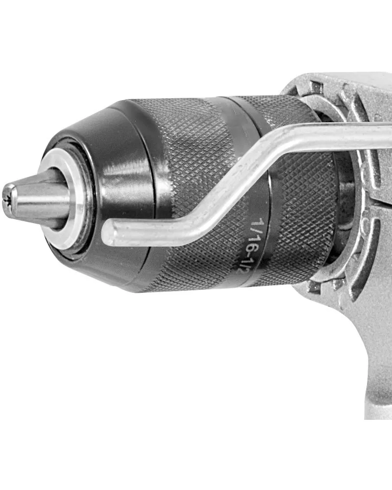 • Konstrukce: kovové rychloupínací sklíčidlo, hloubkový doraz, ergonomicky tvarovaná rukojeť s měkkou tlumicí vložkou, otočné boční držadlo.