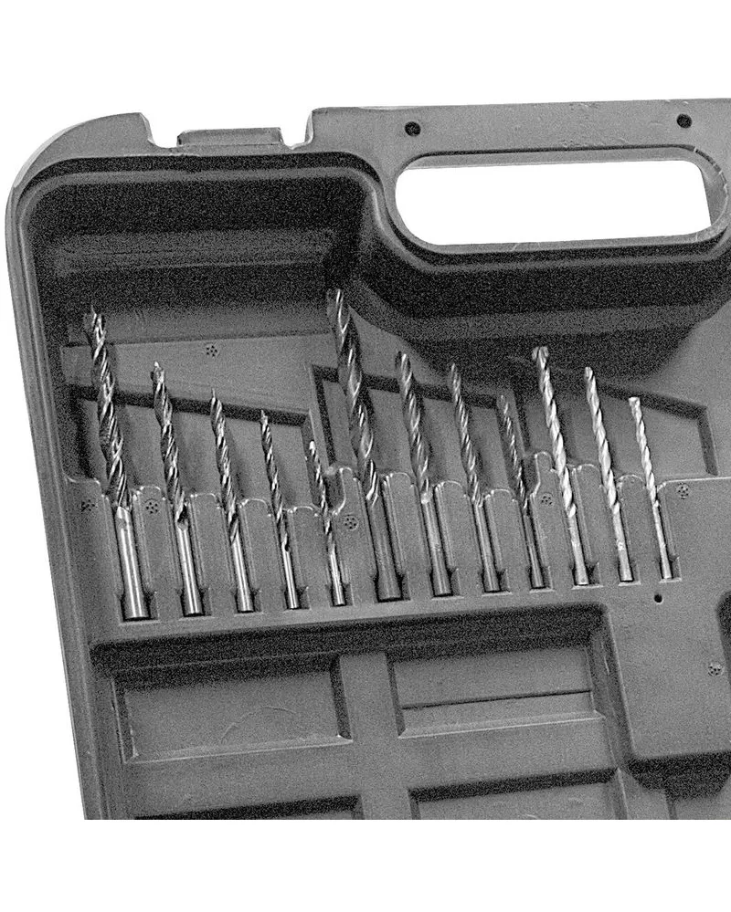 • Příslušenství: vrtáky do dřeva/kovů/kamene (› 12-dílná sada, průměry: 3/4/5/6 - 8 mm), plastový transportní kufřík.