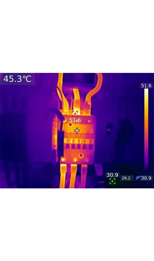 Termokamera UTi720V je špičková kamera pracující v oblasti infračerveného záření, určená pro měření povrchové teploty objektů v rozmezí od -20°C do +550°C. Je vybavena 5MP digitálním fotoaparátem a 3,5″ dotykovým displejem pro zlepšení efektivity práce a kvality obrazu. Vestavěná funkce laserového zaměřování umožňuje měření cílů v bezpečné vzdálenosti. Mezi funkce patří nahrávání videa a hlasu a živé streamování přes Wi-Fi, což zařízení činí ještě pohodlnějším. Jedná se o spolehlivý měřicí nástroj široce používaný v průmyslové oblasti.