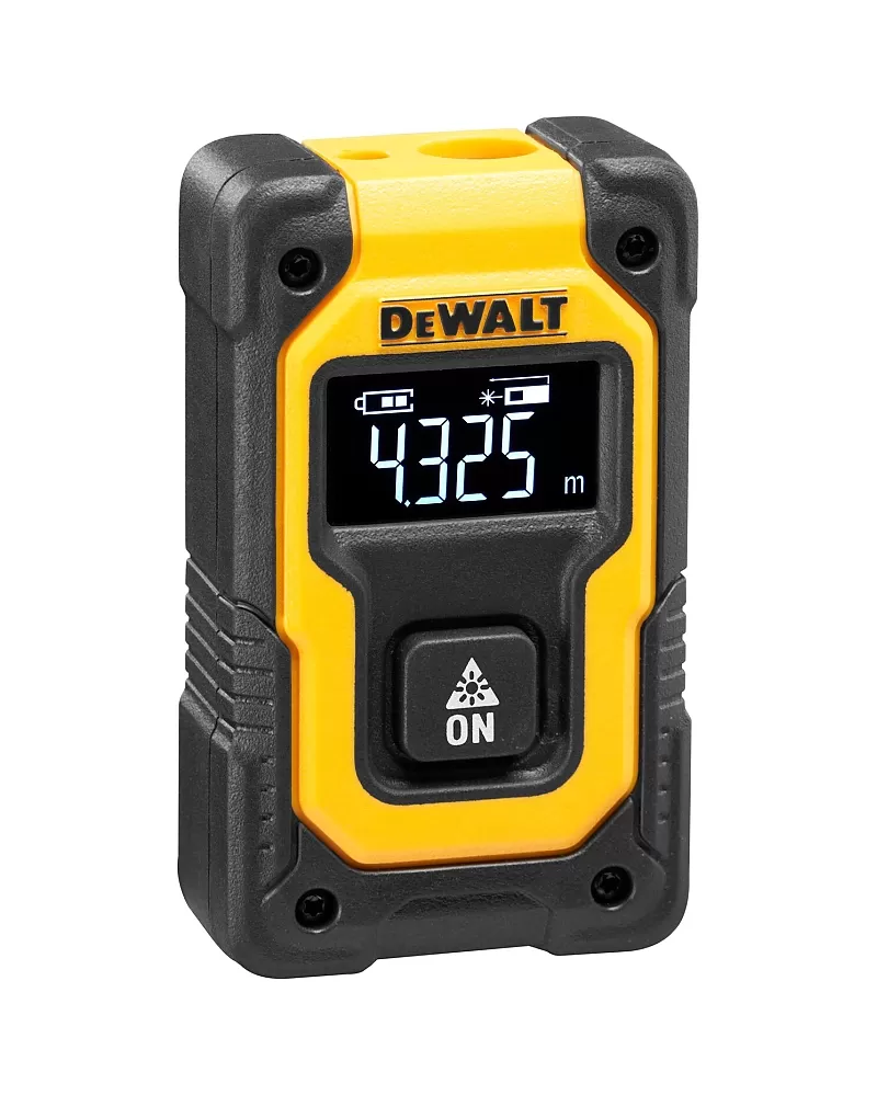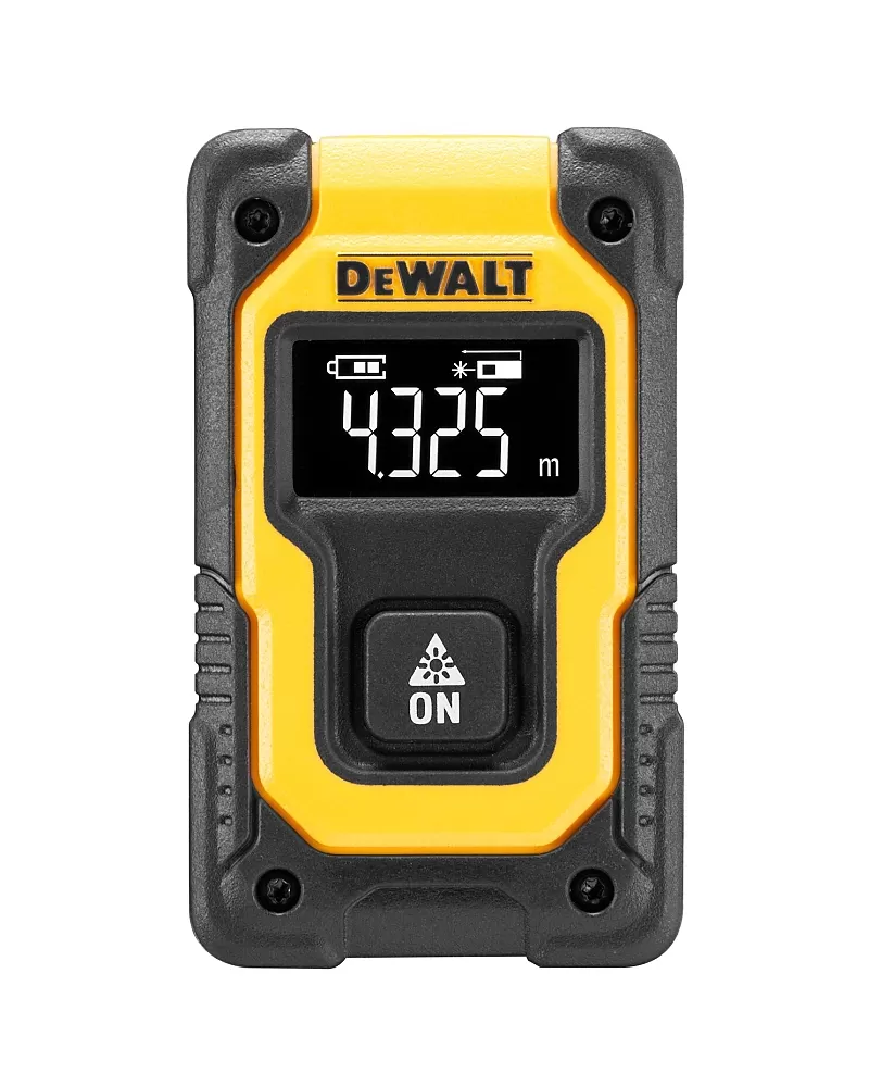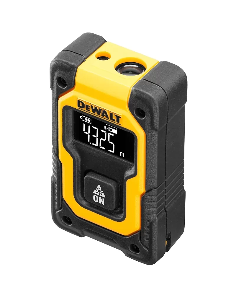 Laserový dálkoměr 16m DeWALT DW055PL s lehkou a kompaktní kostrukcí a integrovaným akumulátorem nabíjeným pomocí USB kabelu.