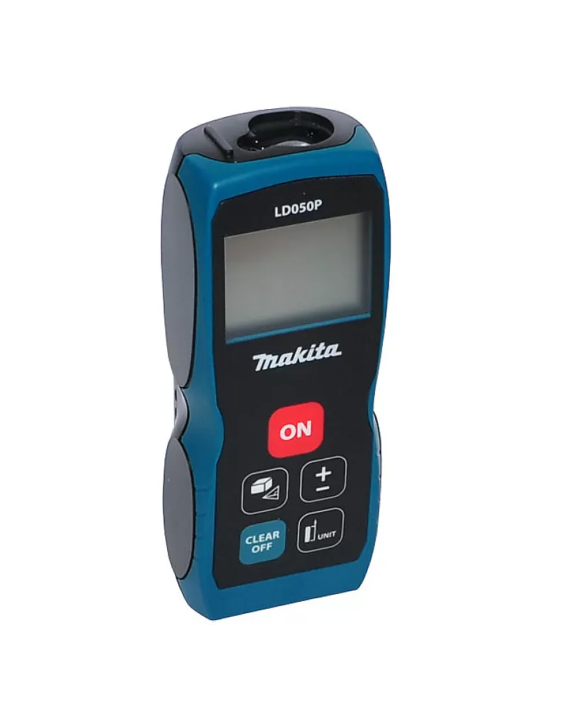 Laserový merač vzdialenosti s dosahom 50 m Makita LD050P na meranie plôch, objemov, nepriame jednobodové, dvojbodové merania a pamäť na posledných päť meraní.