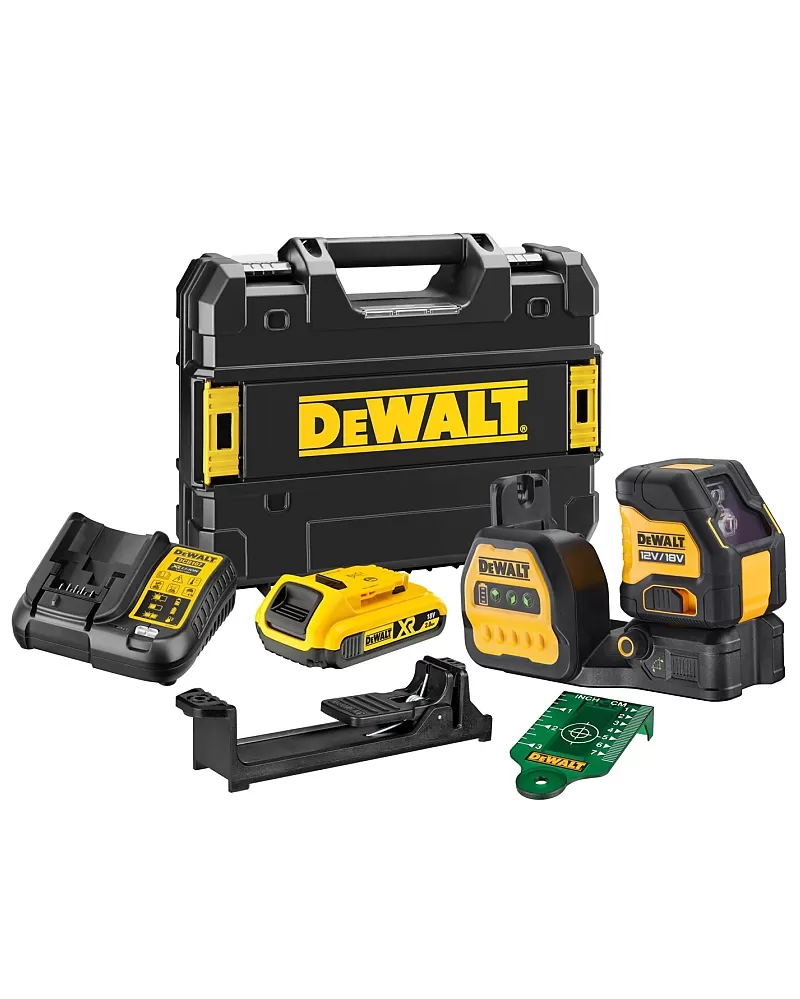 Aku zelený křížový laser 18V 1x2,0Ah DeWALT DCE088D1G18 s přesností +/- 3mm/10m a kompatibilní s akumulátory 18V, 12V i 10,8V řady XR.