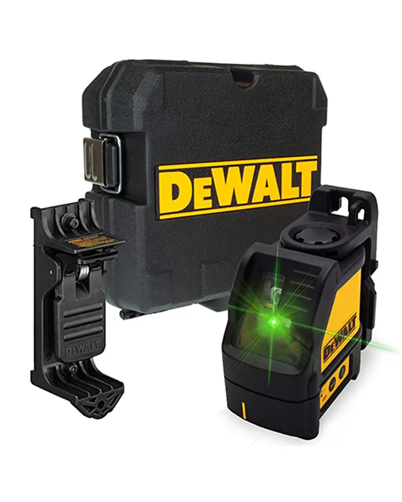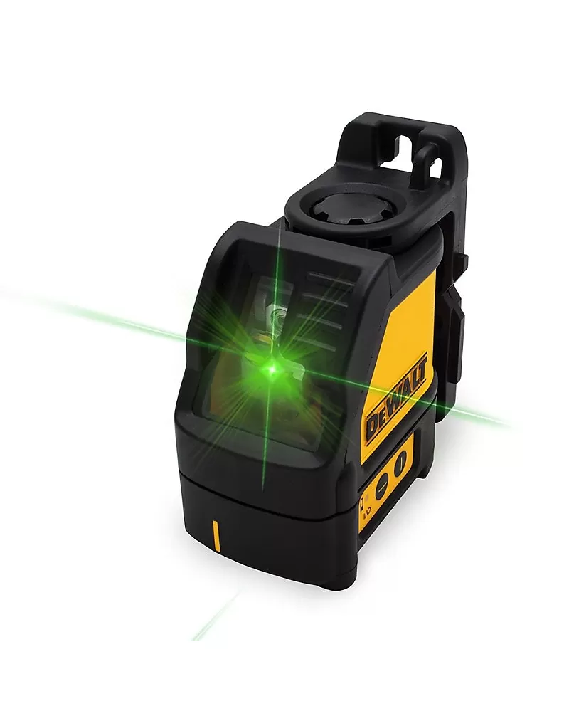 Křížový laser se zeleným paprskem DeWALT DW088CG s dosahem až 50m při použití detektoru a provozní dobou až 40 hodin bez výměny baterií.