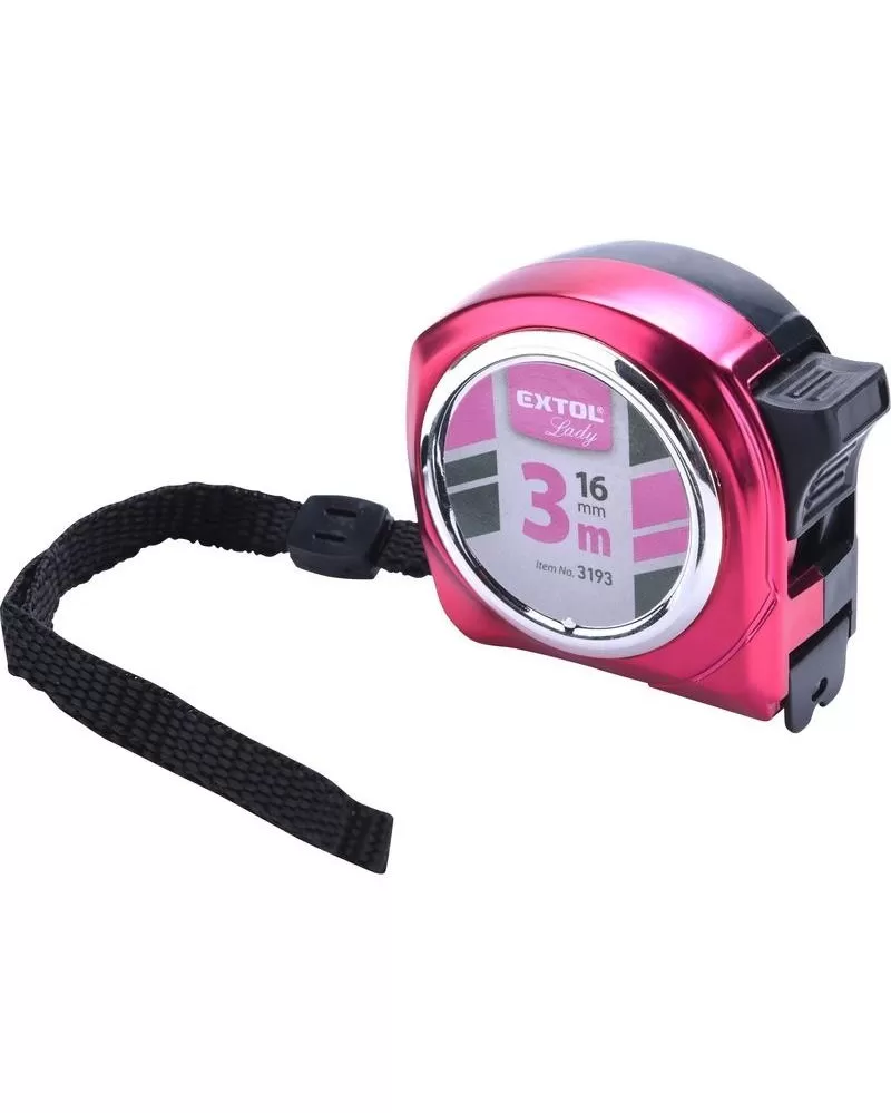 Svinovací metr EXTOL v růžové barvě, dlouhý 3 m pro šikovné slečny a dámy.
