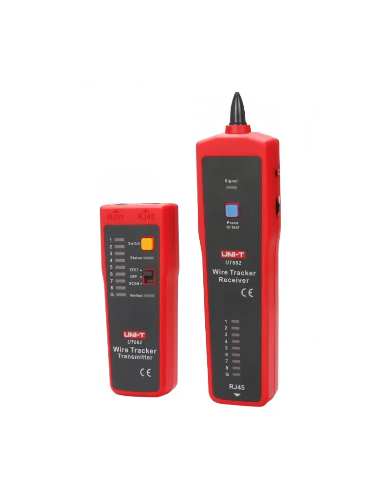• UNI-T UT682 je hledač kabelů skládající se z vysílače a příjmače.
