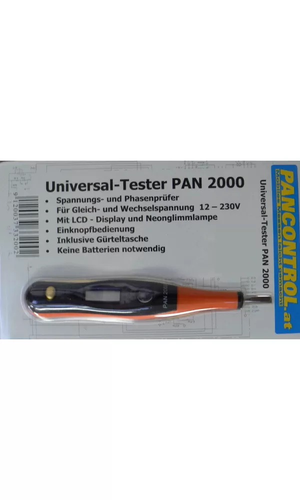 Multifunkční digitální tester AN-2000.  Zkoušečka napětí s LCD displejem, klipem a hrotem šroubováku, bezbateriová, pro testování střídavého i stejnosměrného napětí od 12 do 220 V.  Digitální zkoušečka napětí  je vhodná pro přímé měření a nepřímé měření (ke zjištění přerušení vedení v obvodech pod napětím), v rozsahu 12 v je ideální pro testování rozvodu automobilu.