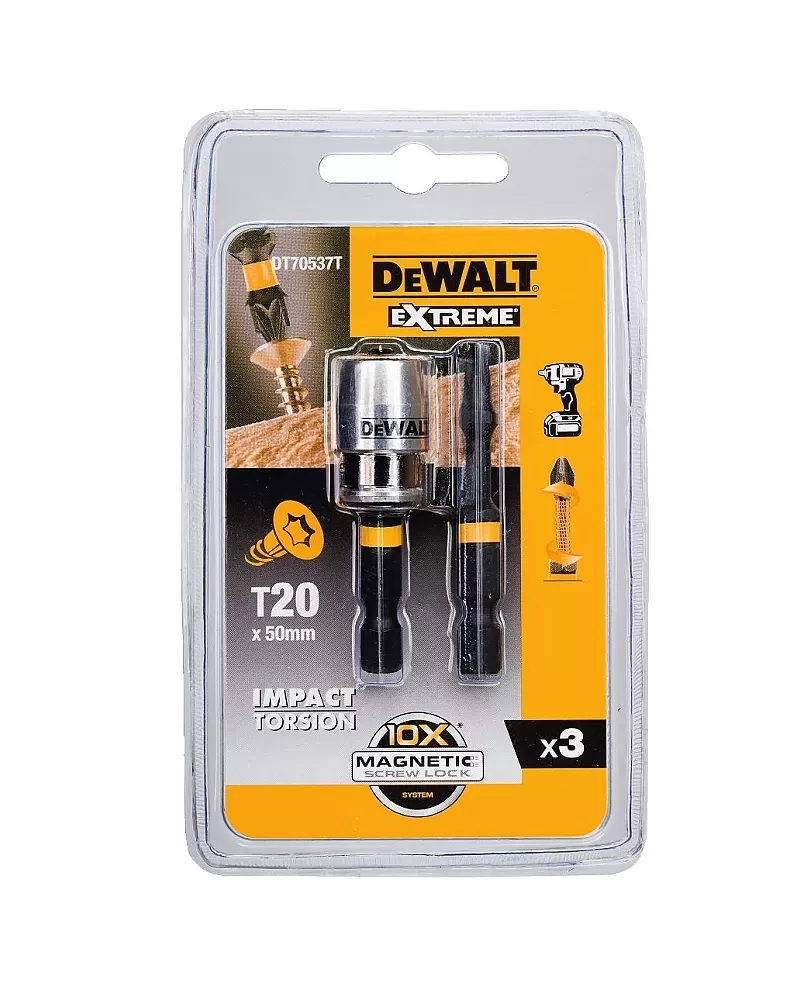 Torsion bity 2xT20 50mm + magnetický držák DeWALT DT70537T Torsion bity 2xT20 50mm + magnetický držák DeWALT DT70537T. Celý popis