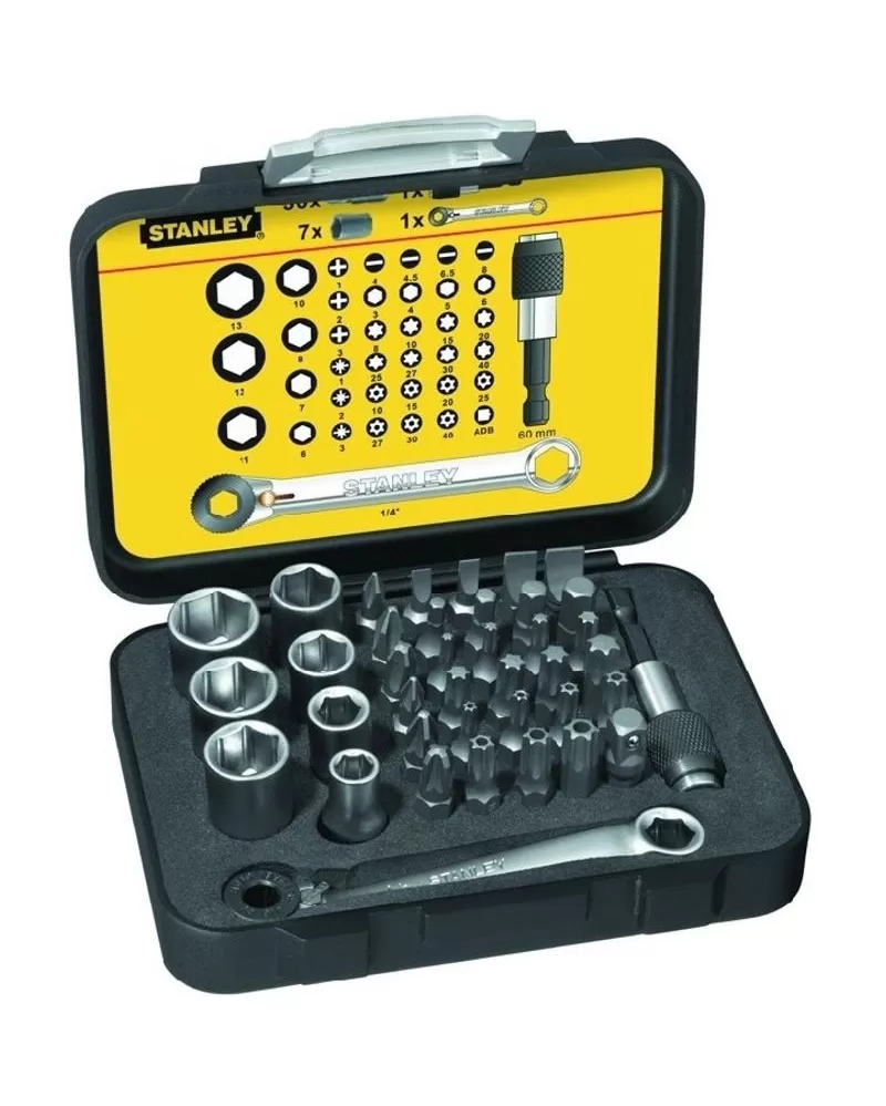 1/4" 39-ti dílná sada bitů a hlavic s ráčnovým klíčem Stanley 1-13-907