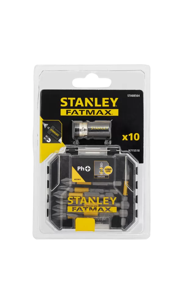 10dílná sada 50 mm torzních bitů PH s držákem bitů Stanley STA88564