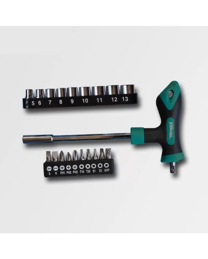 • Sada obsahuje: magnetický držák s rukojetí, PL5; PL6; PH1; PH2; PH3; PZ0; PZ1; PZ2; PZ3; TRX 10,20; hlavice: 5,6,7,8,9,10,11,12,13