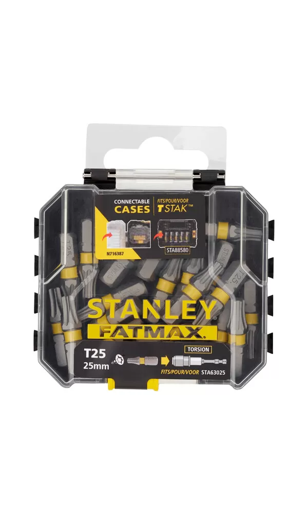 20dílná sada 25 mm bitů pro rázové utahováky T25 Stanley STA88571 Sada bitů v úložném boxu - kompatibilní se systémem TSTAK T25 bity pro… Celý popis