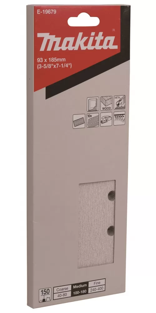 Brúsne papiere na suchý zips s dlhou životnosťou. Sú vhodné na brúsenie dreva, neželezných kovov, plastov a kameňa. Papiere majú špeciálnu povrchovú úpravu, ktorá zabraňuje upchávaniu brúsnych zŕn. Papiere sú perforované (8 otvorov), balené po 10 ks.