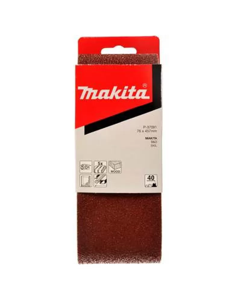 Brusný pás 76x457mm sada K40/80/120 Makita P-37166Brusné pásy s dlouhou životností vhodné pro broušení dřeva, barevných kovů, plastů a kamene. 3ks Celý popis