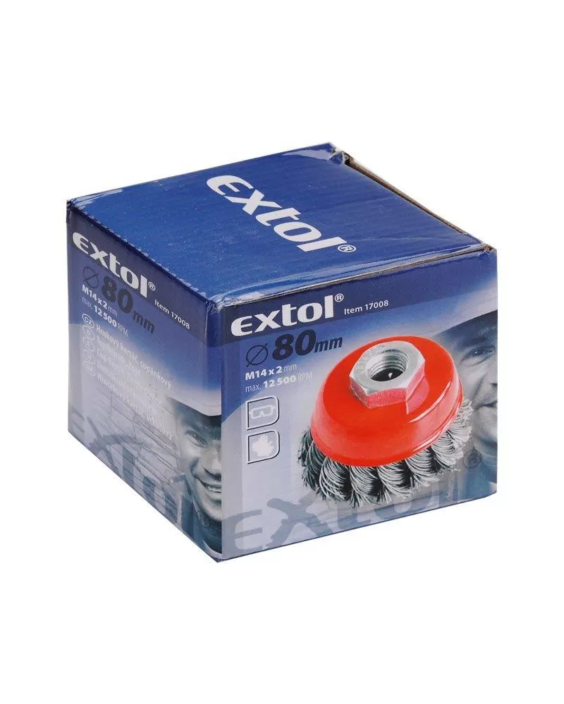 Kartáč hrnkový copánkový 65mm vlnitý drát S 0,5mm M14x2mm EXTOL CRAFT 17007 Na těžké kartáčovací práce, na odstranění barvy, rzi, otřepů a… Celý popis