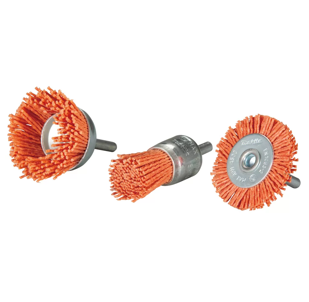 Sada obsahuje 3 nylonové kartáče s hrubostí 80. Průměr hřídele 6 mm. Ideální pro hrubé broušení dřeva, plastu nebo kovu při použití vrtacích šroubováků a vrtaček.