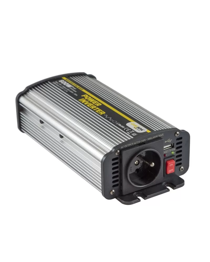 Napěťový měnič Carspa CAR600U-122 12V/230V+USB 600W, modifikovaná sinus