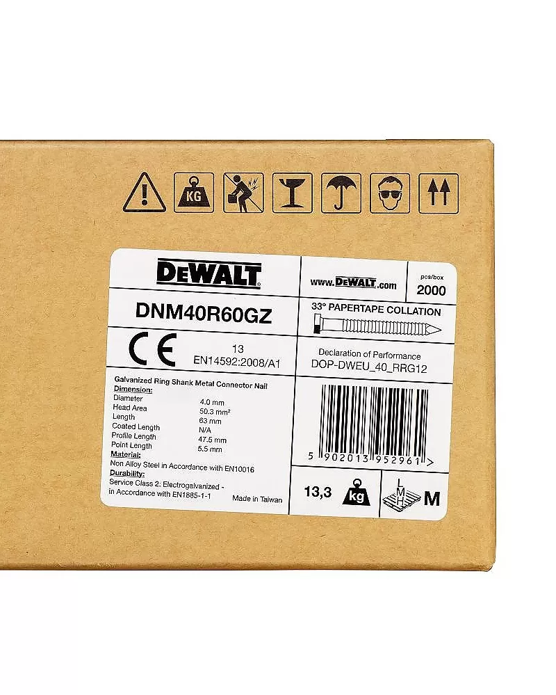 Pozinkované kroužkované hřebíky 4x60mm pro DCN693 2000ks DeWALT DNM40R60GZ Celý popis