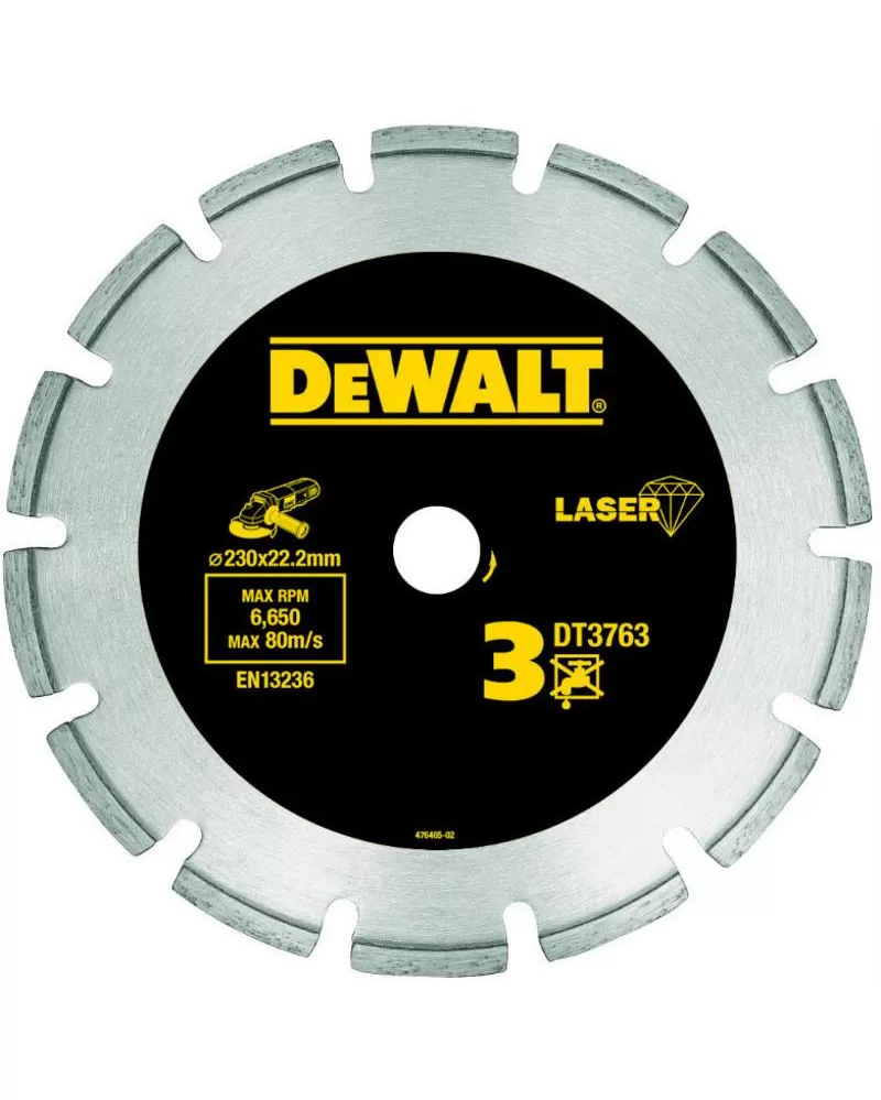 Dia kotouč Laser 3 na tvrdé materiály, žulu, vyztužený beton 230x22,2mm DeWALT DT3763