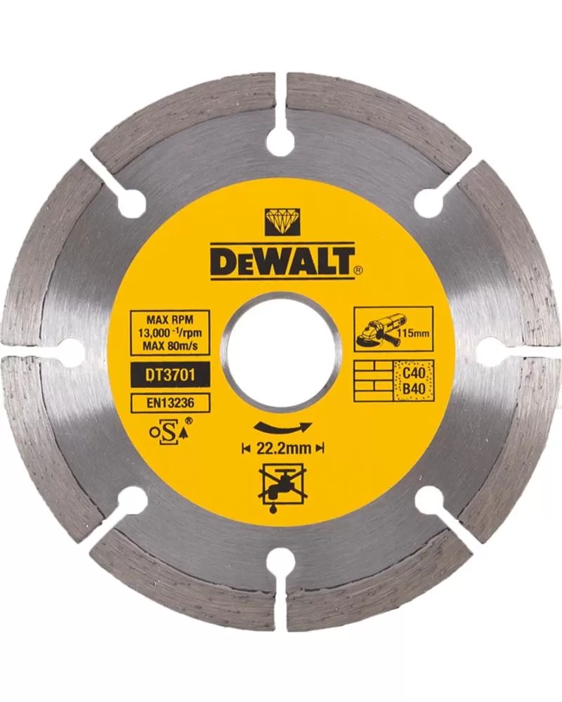 Dia kotouč profi ze slinutých karbidů na suché řezání betonu a cihel 115x22,2mm DeWALT DT3701