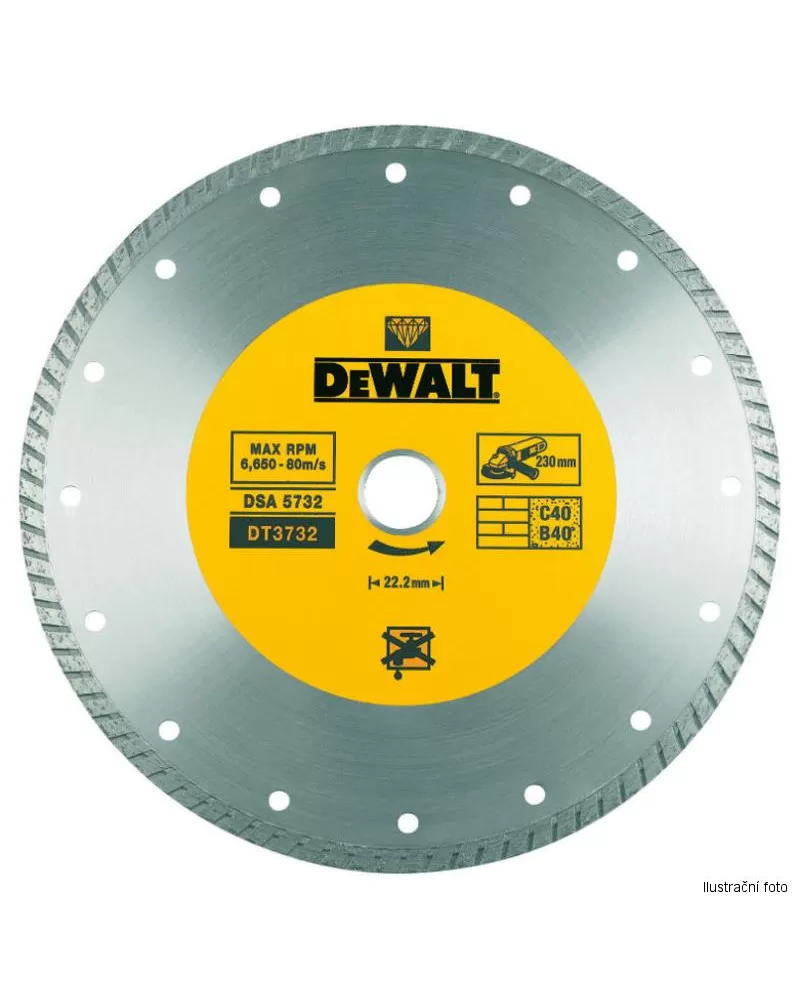Dia kotouč Turbo profi ze slinutých karbidů na suché řezání 230x22,2mm DeWALT DT3732 Diamantový kotouč se slinutými karbidy pro suché řezání… Celý popis