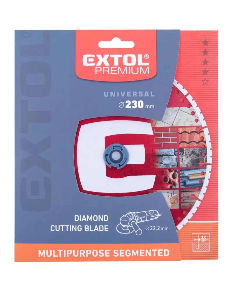 Kotouč řezný diamantový MULTI univerzální, 230x22,2x3mm EXTOL PREMIUM 8803004 Kotouč dosahuje nejlepších výsledků při řezání stavebních… Celý popis