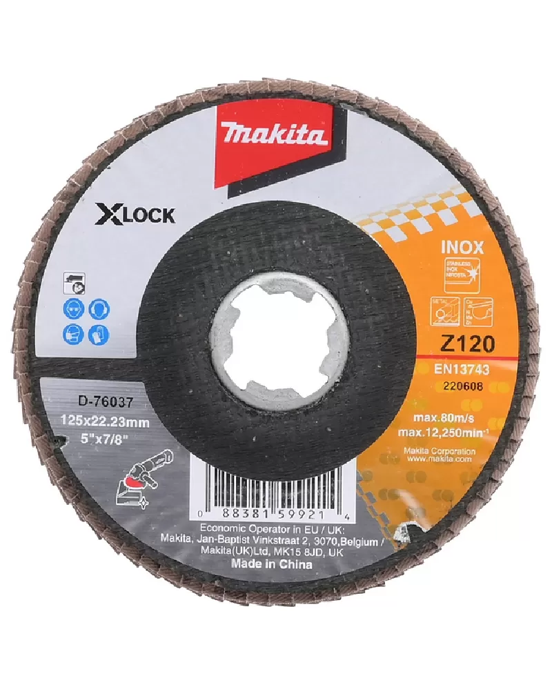 Kotouč lamelový X-Lock 125x22,23mm Z120 Zirkon Makita D-76037Lamelové kotouče Zirkon jsou vhodné zejména k broušení ušlechtilé oceli, neželezných… Celý popis