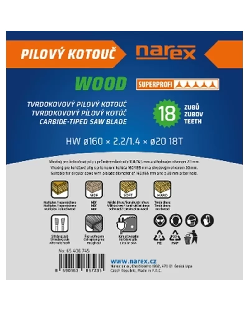 Pilový kotouč 160 × 2.2/1.4 × 20 18T Narex 65406745