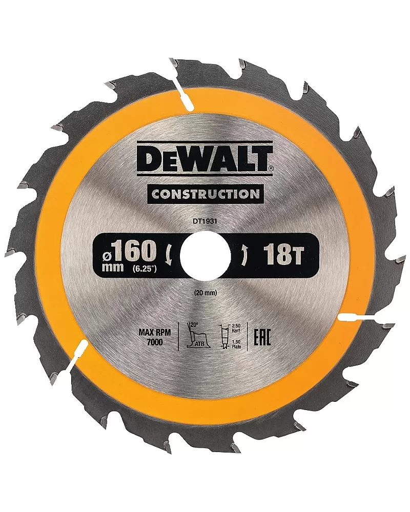 Pílový kotúč 160x20mm, 18 zubov, šírka 1,5mm, ATB +20° pre akumulátorové píly DeWALT DT1931, pre univerzálne rezanie.