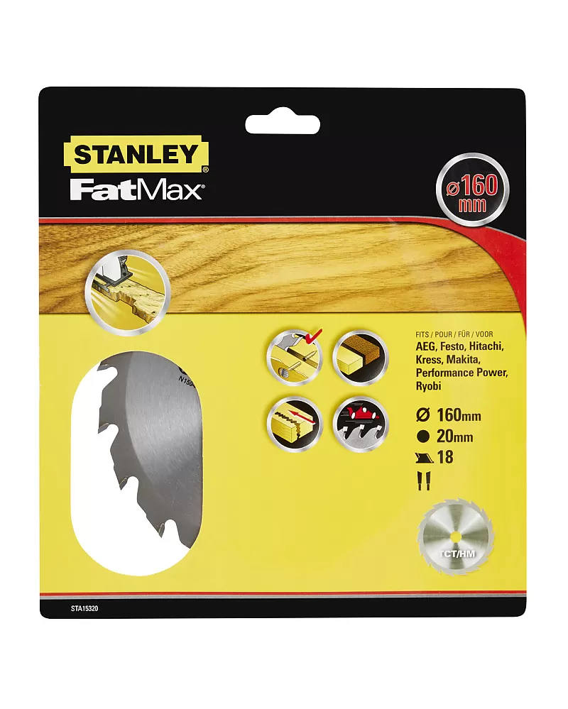 Pilový kotouč TCT/HM brousitelný pro podélné řezy 160 x 20 mm, 18 zubů Stanley STA15320