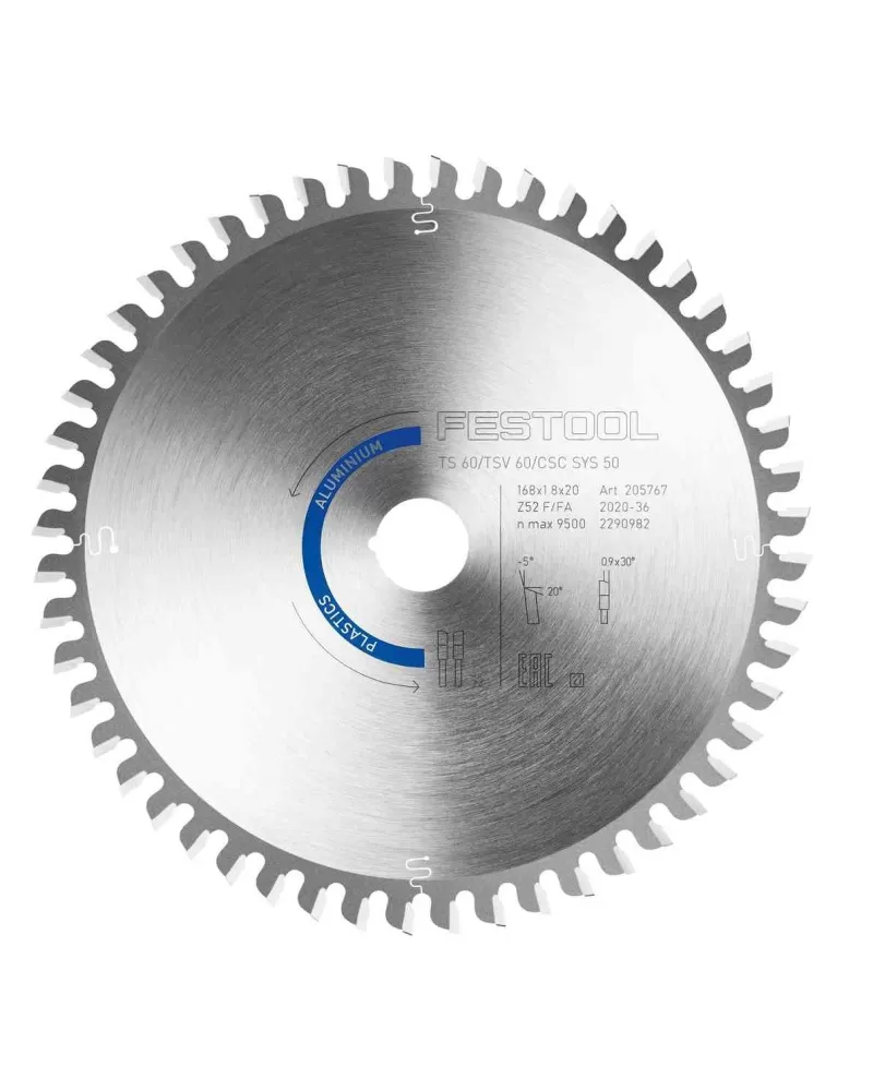 Pilový kotouč do okružních pil ALUMINIUM/PLASTICS HW 168x1,8x20 F/FA 52 FESTOOL 205767