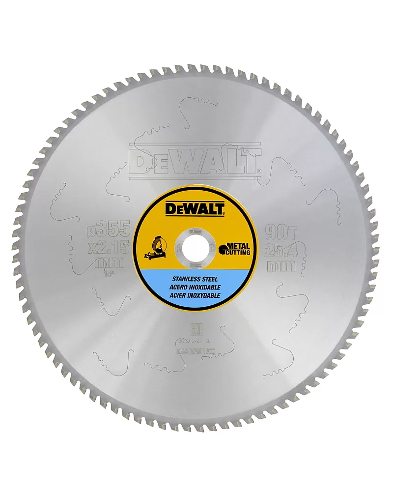 Pilový kotouč pro řezání kovu 355x25,4mm 90z EXTREME DeWALT DT1922, vhodný na řezání nerezové ocele.