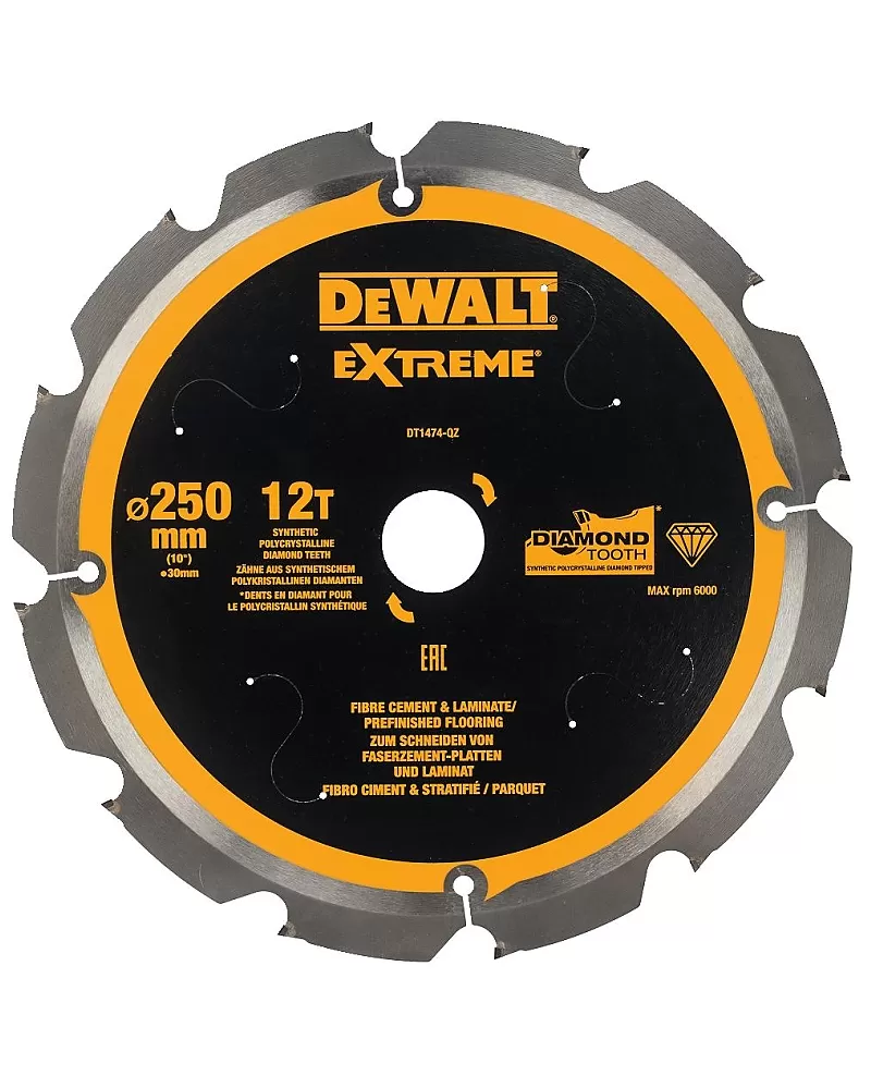 Pilový kotouč pro cementovláknité desky a laminát 250x30mm 12z DeWALT DT1474.