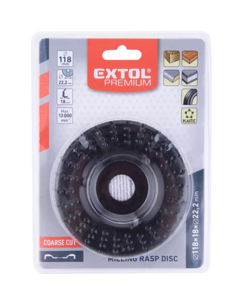 Kotouč rašplový/frézovací na dřevo, 118x18x22,2mm, hrubý sek EXTOL PREMIUM 8803720