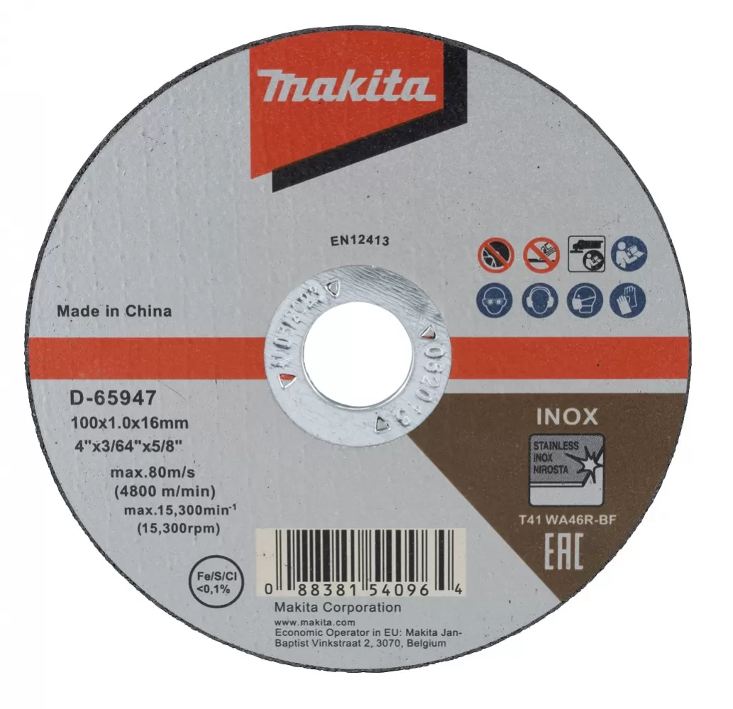 Nerezový rezný kotúč 100 x 1,0 x 16 mm Makita D-65947Rezný kotúč na oceľ a nehrdzavejúcu oceľ určený pre 100 mm uhlové brúsky. Celý popis
