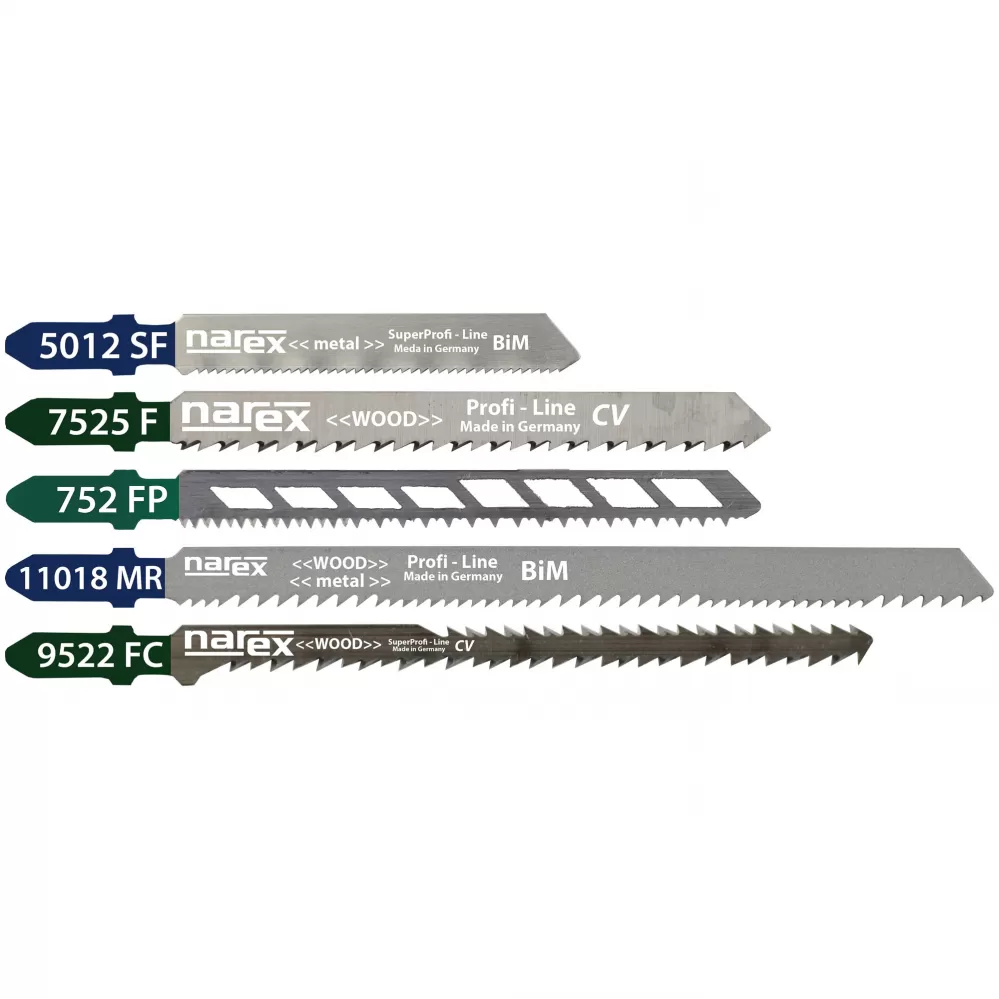 Sada pilových plátků dřevo/kov SET SBN 5 Narex 65404426 1× SBN 5012 SF ocelové plechy, nerezová ocel, neželezné kovy, čisté přímé řezy 1× SBN 7525… Celý popis