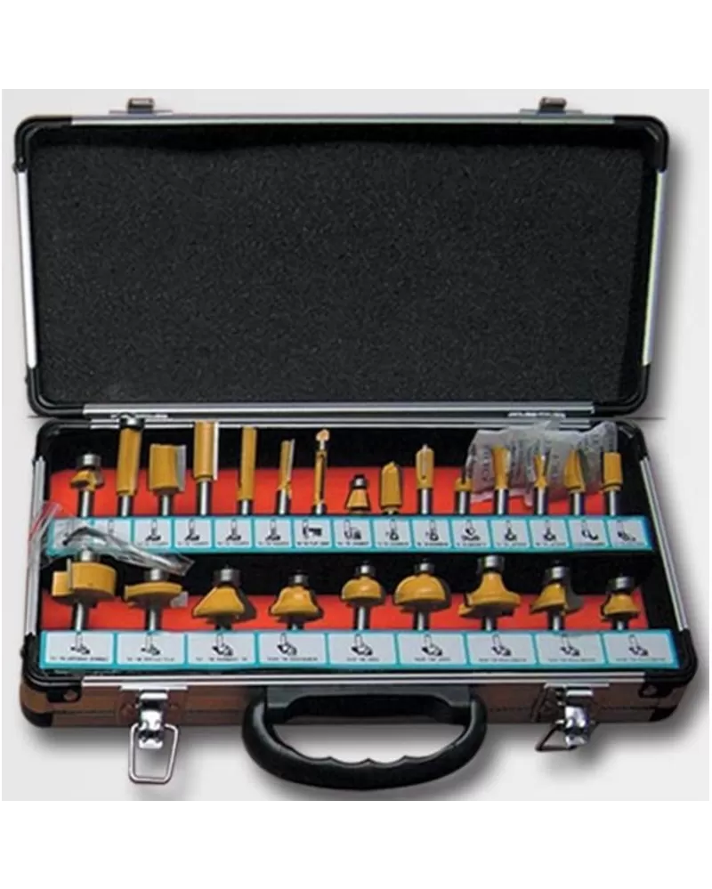 Sada tvarových fréz 24dílů STAVTOOL Tvrdokovové tvarové frézy pro horní frézky v hliníkovém kufříku s přehledným uložením. Součást dodávky hlíníkový… Celý popis
