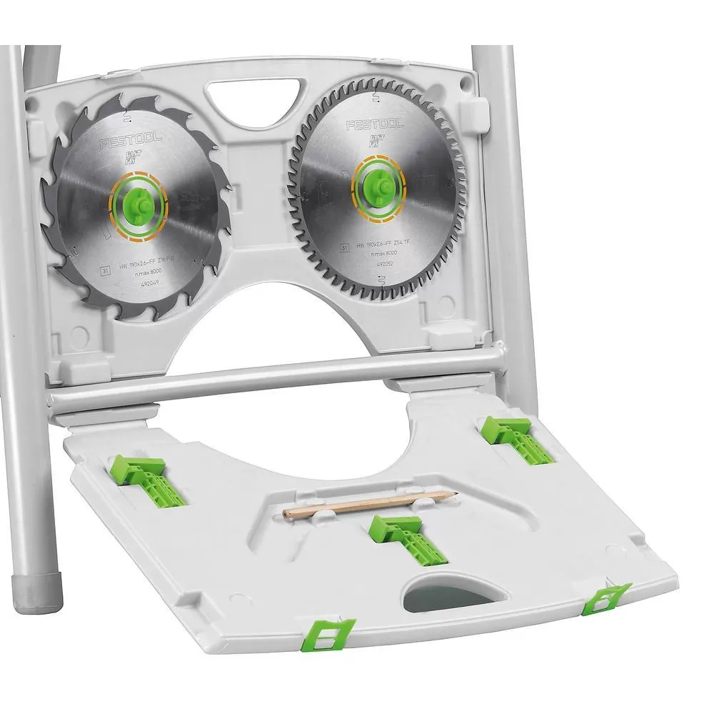 Držák na pilové kotouče Festool SGA Hodí se pro typy nářadí: CS 50, CMS-GE K bezpečné a místo šetřící úschově až 4 pilových kotoučů. Rozsah… Celý popis