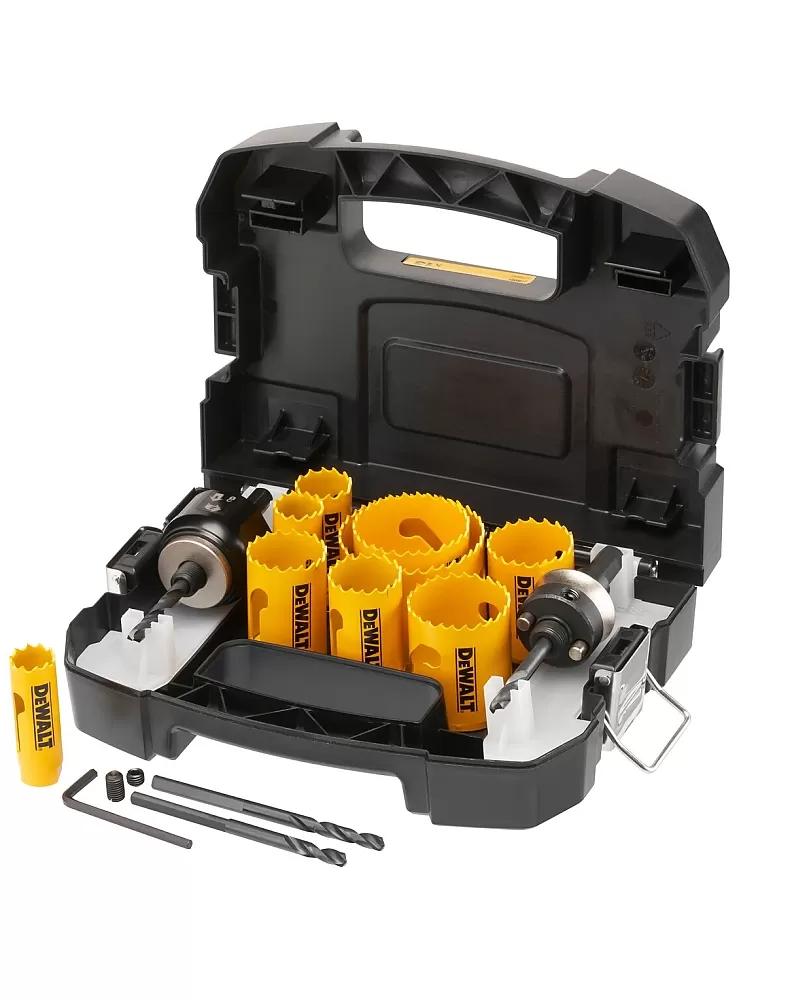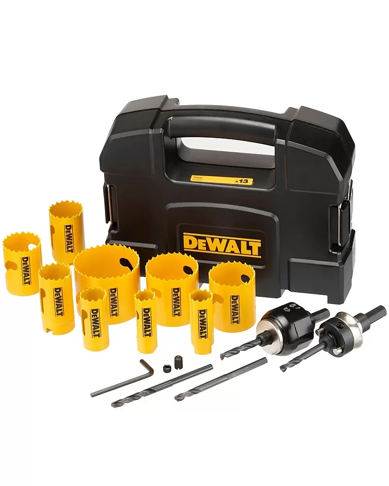 13dílná sada BiM korunek EXTREME DeWALT DT90361 s hloubkou řezu až 47mm, zuby pro rychlé řezání a dlouhou životností.