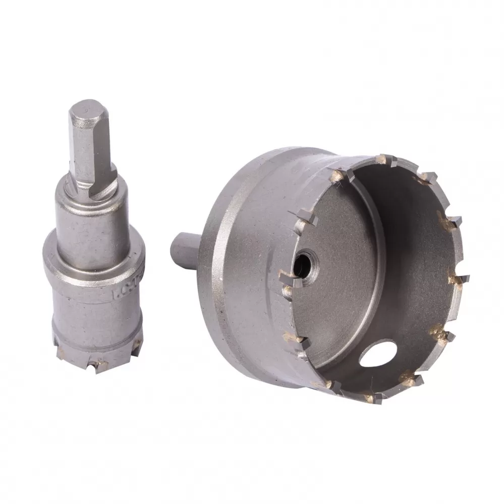 • Vykružovací korunka ze slinutého karbidu z jednoho kusu oceli s naváděcím vrtákem slouží pro vrtání kruhových děr do kovových materiálů.
